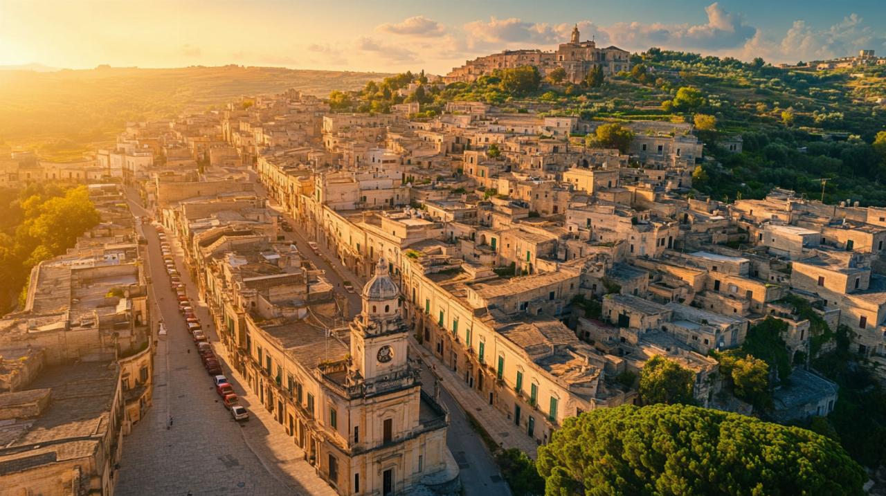 Nichée au cœur de la Sicile baroque, Modica se distingue par son patrimoine architectural exceptionnel, sa gastronomie unique et son lien privilégié avec la culture populaire italienne. Cette ville fascinante attire chaque année des milliers de visiteurs curieux de découvrir ses trésors chocolatés, ses décors de séries télévisées emblématiques et ses monuments historiques classés au patrimoine mondial de l'UNESCO. Entre tradition artisanale et héritage culturel, Modica offre une expérience de voyage inoubliable qui marie authenticité sicilienne et reconnaissance internationale.